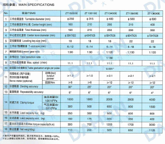 • 產品名稱: ZT13(250-630)E系列立臥兩用數控回轉工作臺