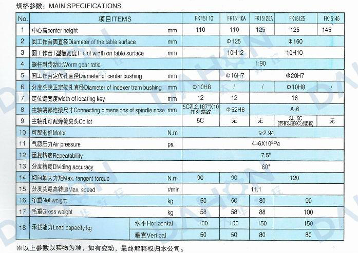 Model FK 15 series NC dividing head is one of the main accessories for the NC machine and machine center,it can also be used as one of the main accessories of semiauto milling machine,boring machine or other machine tool.